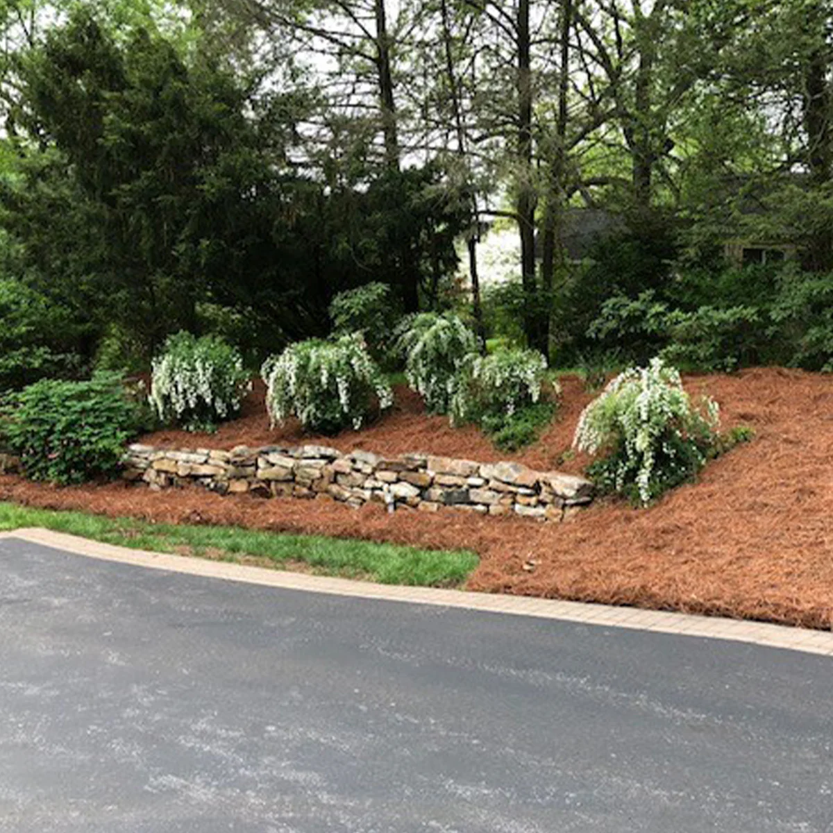 Installation of mulch, pine straw or rock of your choice into your flower beds to give it a refresh.
